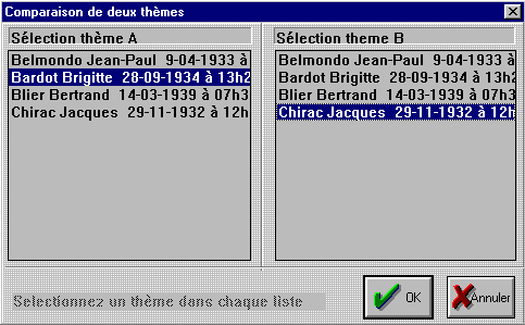 Sélectionnez le premier thème à comparer dans la liste de Gauche ("Sélection thème A") et sélectionnez le second thème à comparer dans la liste de Droite ("Sélection Thème B").