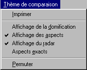 Selon la préférence définie dans le dialogue "Paramètres des thèmes" les aspects sont affichés (menu coché) ou masqués (menu non-coché).