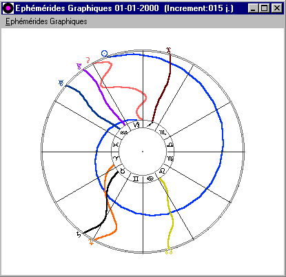 Ce graphique correspond à la progression des planètes sur le zodiaque en fonction du temps.