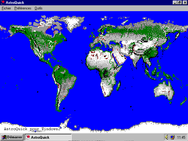En bas et à gauche de la Fenêtre principale figure un indicateur géographique.