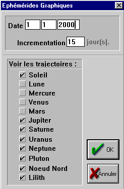 Nota: le paramètres de sélection des planètes, de même que la valeur de l'incrément sont conservés automatiquement dans les préférences d'AstroQuick. Ils sont rappelés automatiquement à la ré-ouverture du dialogue.